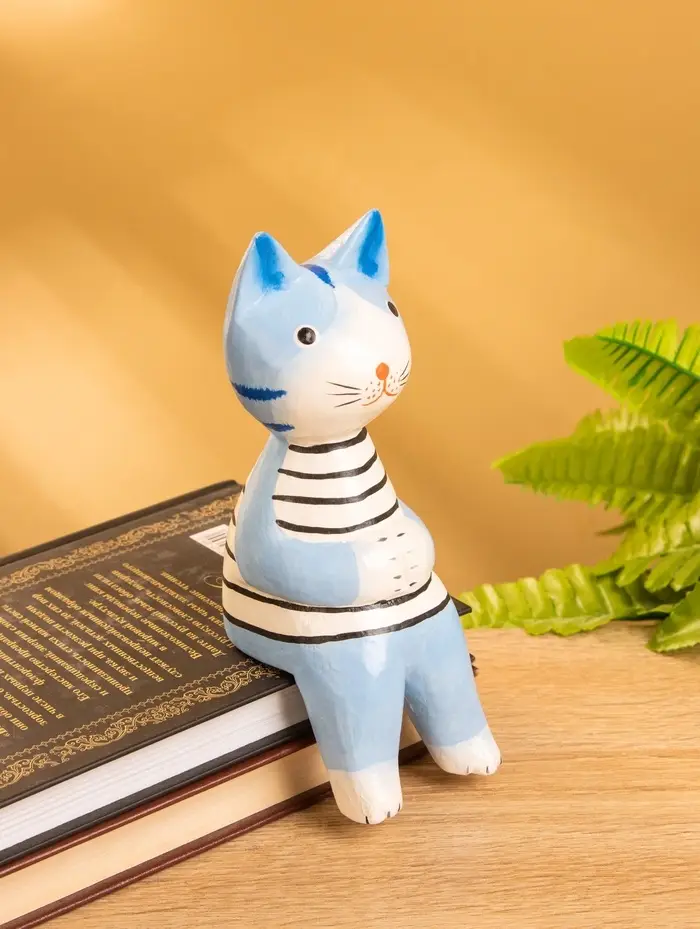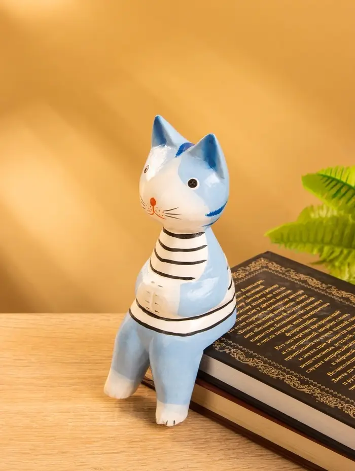 Сувенир дерево "Кот сидячий" цв. голубой, 6х6х15 см