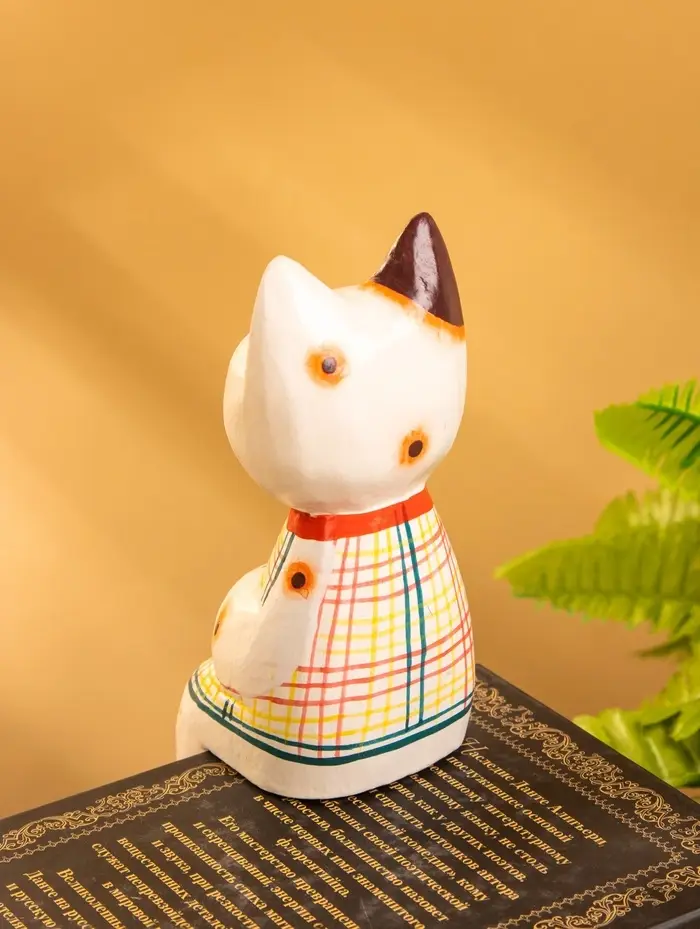 Сувенир дерево "Котенок в рубашке сидячий" 6х6х15 см