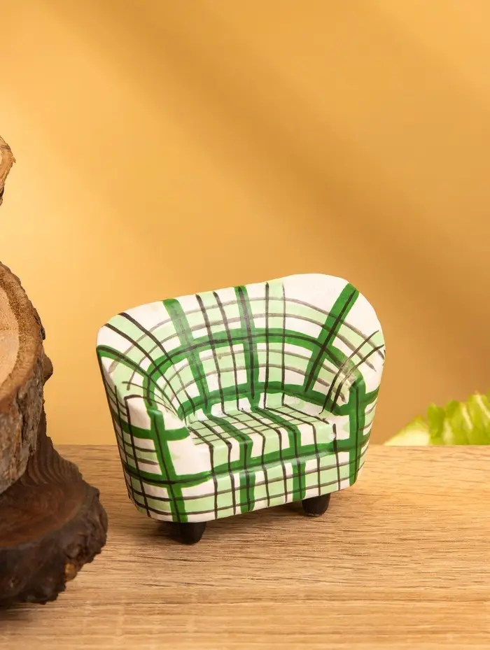Сувенир дерево "Кресло клетчатое" цв. зелёный, 6х3,5х5 см