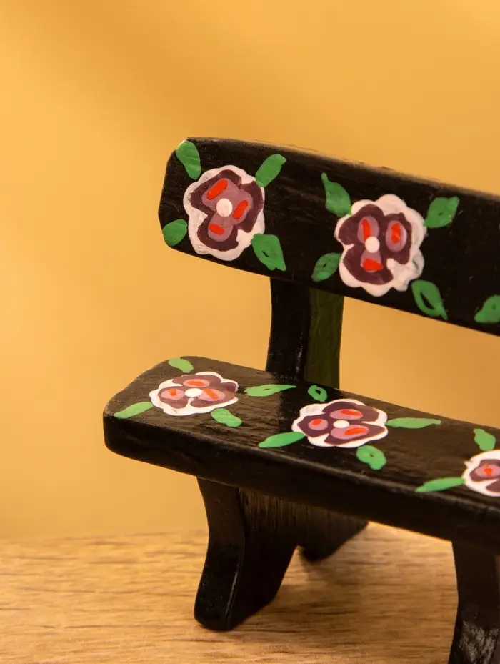 Сувенир дерево "Скамейка с цветами" цв. чёрный, 6,5х3,5х6 см