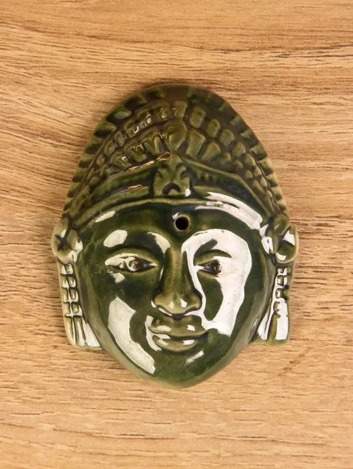 Подставка под благовония "Лицо Будды" керамика, цв. зелёный, 7х5,5х1,5 см