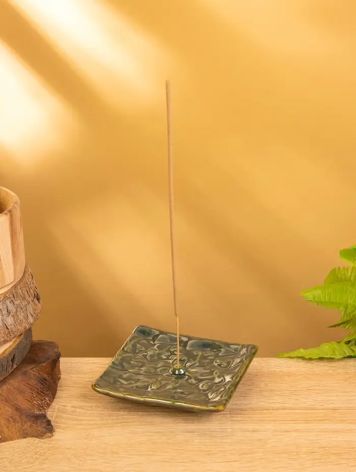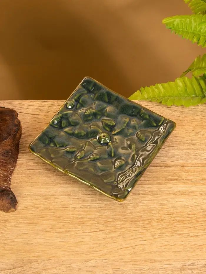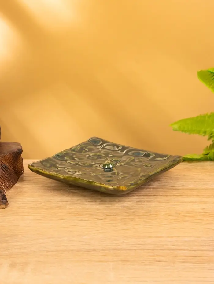 Подставка под благовония "Листва" керамика, цв. зелёный, 10х10х2 см