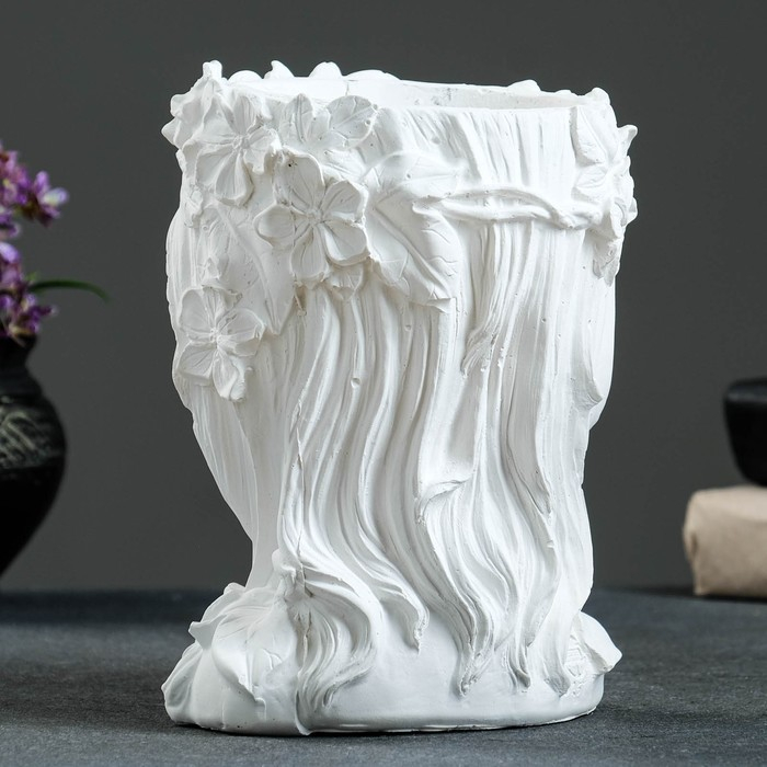 Кашпо - органайзер "Девушка с венком" белая, 14х19х14см