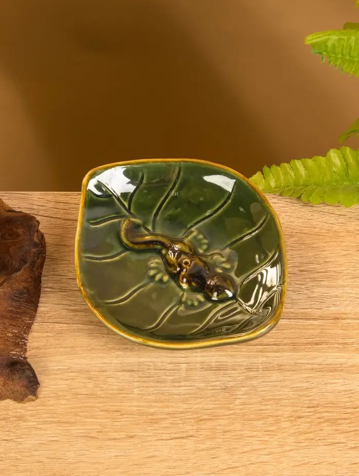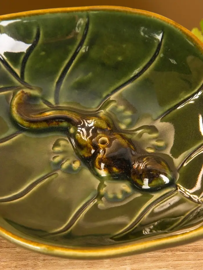 Подставка под благовония "Геккон на листке" керамика, цв. коричнево-зелёный, 13х11х2 см