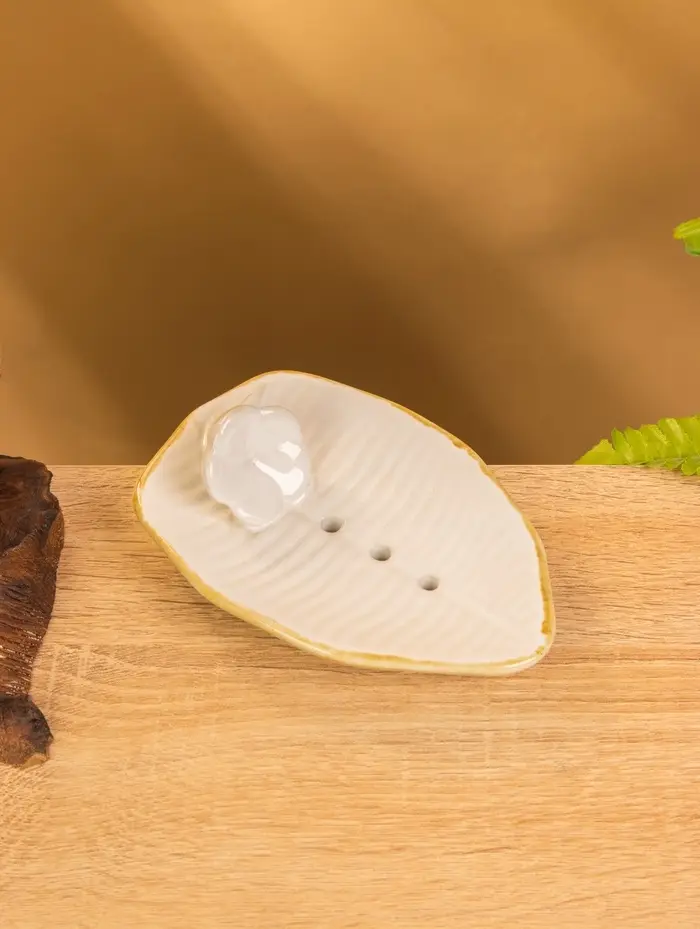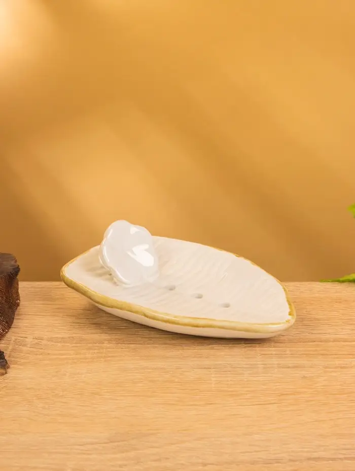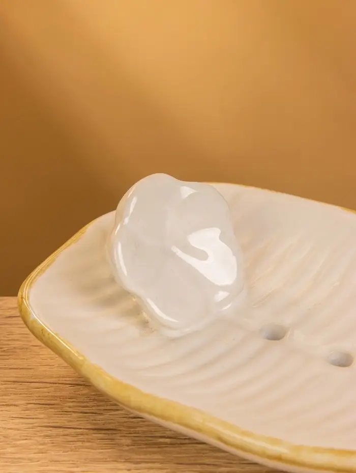 Мыльница "Флора" керамика, цв. бежево-белый, 14х9,5х4 см