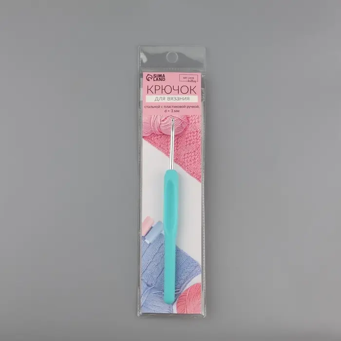 Крючок для вязания, с пластиковой ручкой, d = 3 мм, 14 см, цвет голубой