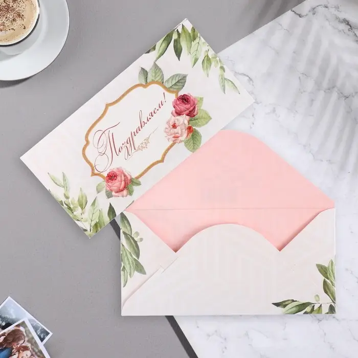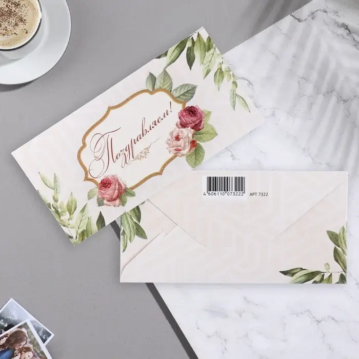 Конверт для денег "Поздравляем!" цветы, 17,1х8 см