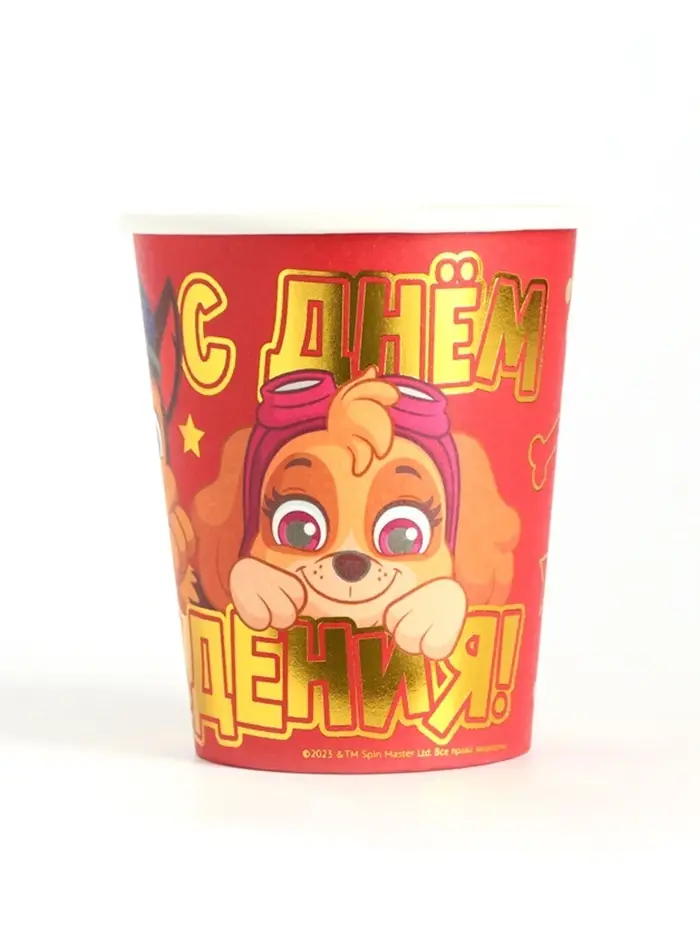 Стакан одноразовый бумажный с тиснением «С Днем Рождения!», 250 мл, Щенячий патруль