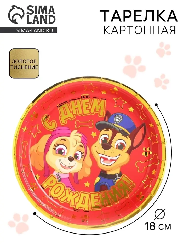 Тарелка одноразовая бумажная с тиснением «С Днем Рождения!», 18 см, Щенячий патруль