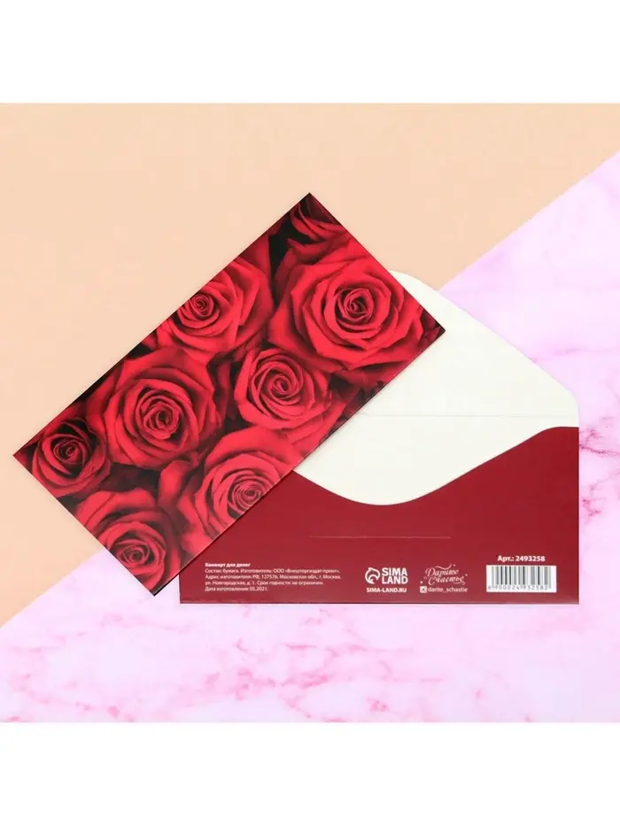Конверт для денег «Малиновые розы» 16.5×8 см