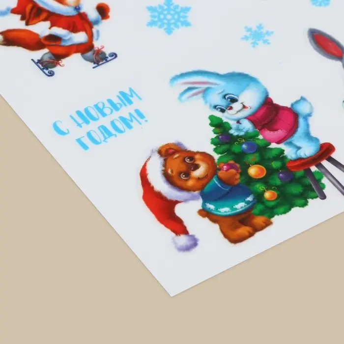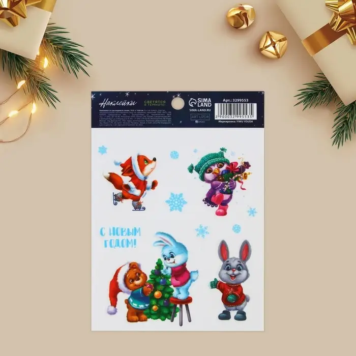 Наклейки новогодние, интерьерные со светящимся слоем «Новогодний венок», 21 х 29,7 х 0,1 см, Новый год