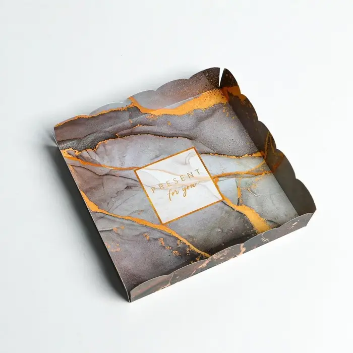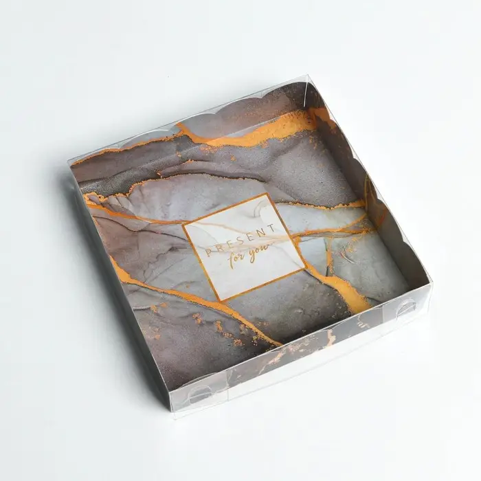Коробка для печенья, кондитерская упаковка с PVC крышкой, «Мрамор», 15 х 15 х 3 см
