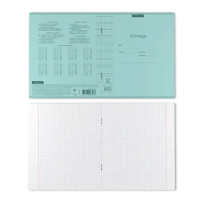 Тетрадь 12 листов в клетку, ErichKrause «Классика» CoverPrо Pastel, в клетку, пластиковая обложка, мятная