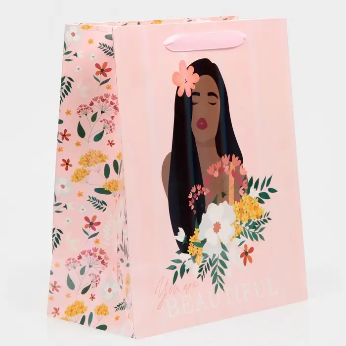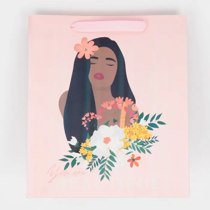 Пакет подарочный ламинированный, упаковка, «Ты красивая», радужная голография, ML 23 х 27 х 11.5 см
