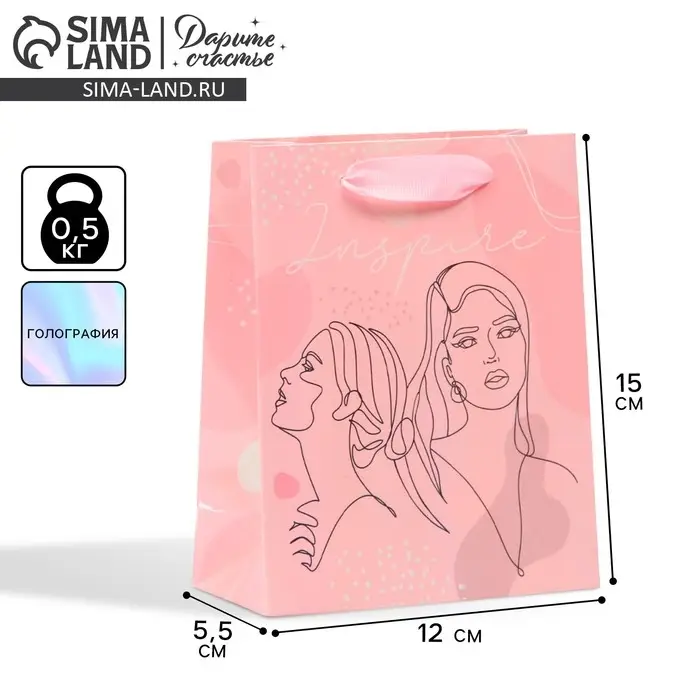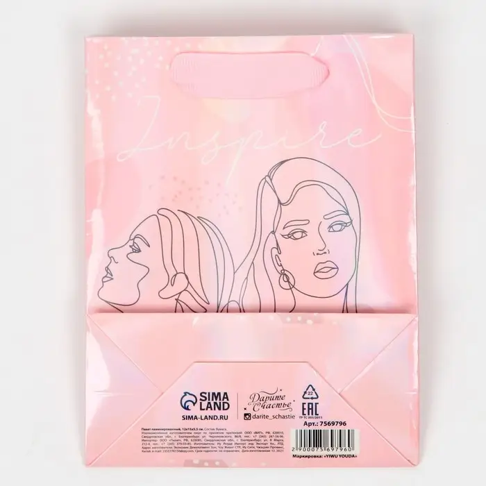 Пакет подарочный ламинированный, упаковка, «Вдохновение», радужная голография, S 12 х 15 х 5.5 см