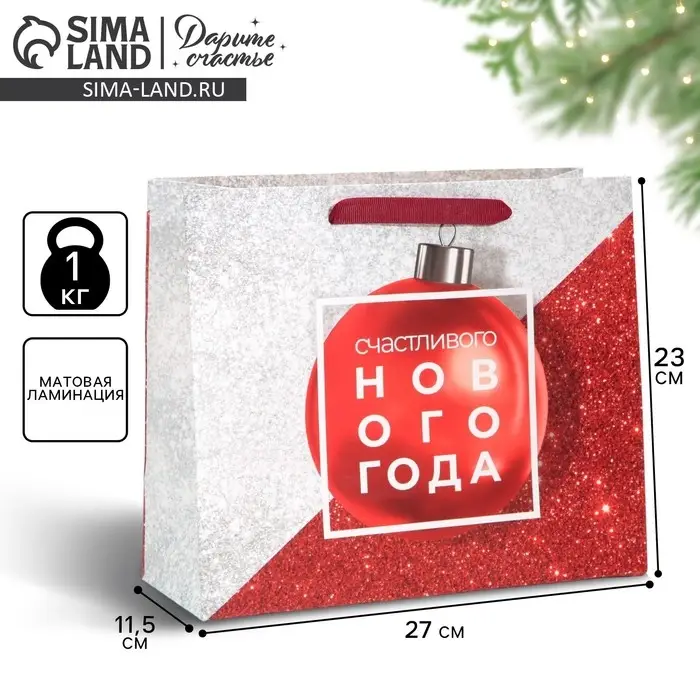Пакет подарочный новогодний ламинированный «Мерцание», ML 27 х 23 х 11.5 см