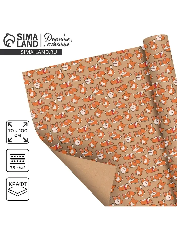 Бумага упаковочная крафтовая «Корги», 70 х 100 см