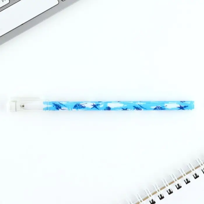 Ручка шариковая, синяя паста 0.5 мм с колпачком пластик «Танки»