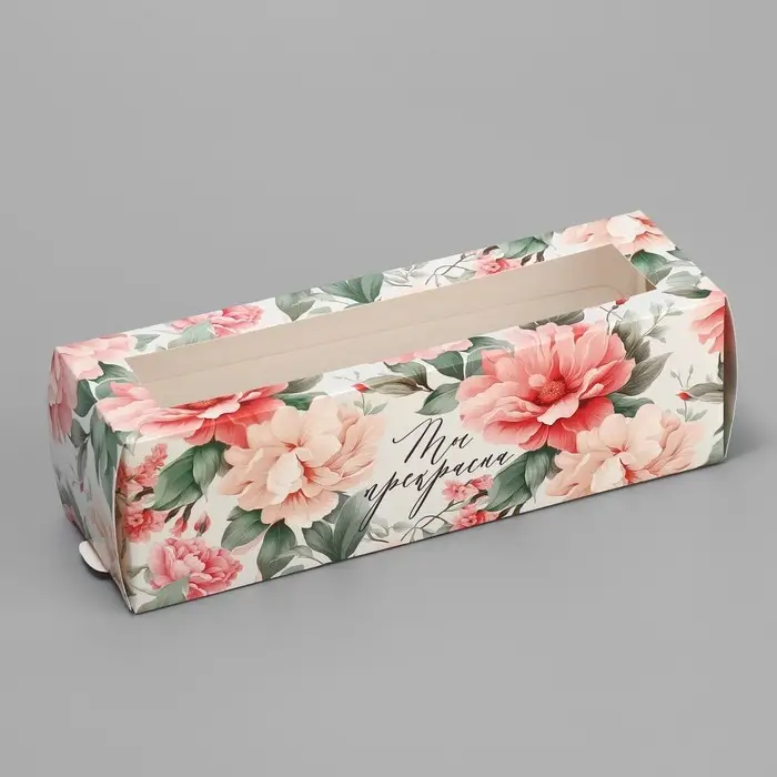 Коробка для макарун, кондитерская упаковка «Ты прекрасна», 18 х 5.5 х 5.5 см
