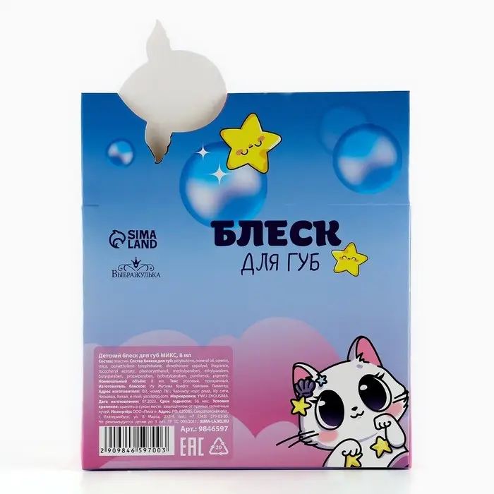 Детский блеск для губ «Котик», 8 мл, МИКС