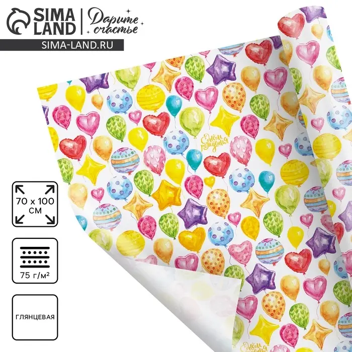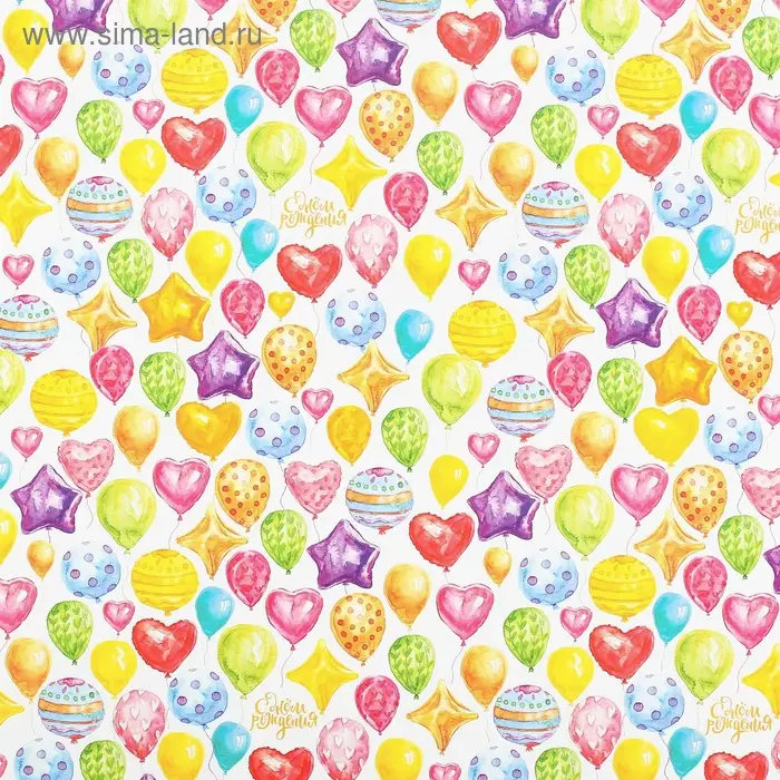 Бумага упаковочная глянцевая «С Днём Рождения!», 70 х 100 см