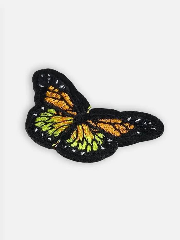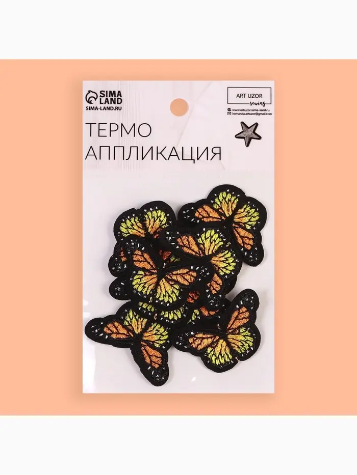 Термоаппликация «Бабочка» от торговой марки "Арт Узор" — это текстильная термонаклейка в виде яркой оранжевой бабочки. Размер аппликации составляет 4,3 × 3 см, что делает её идеальной для декорирования детской и взрослой одежды, аксессуаров или домашнего текстиля.