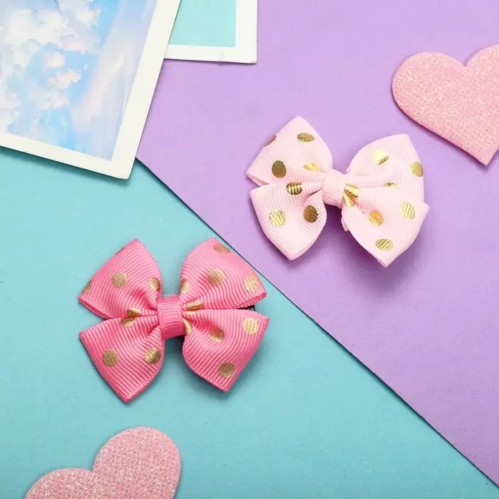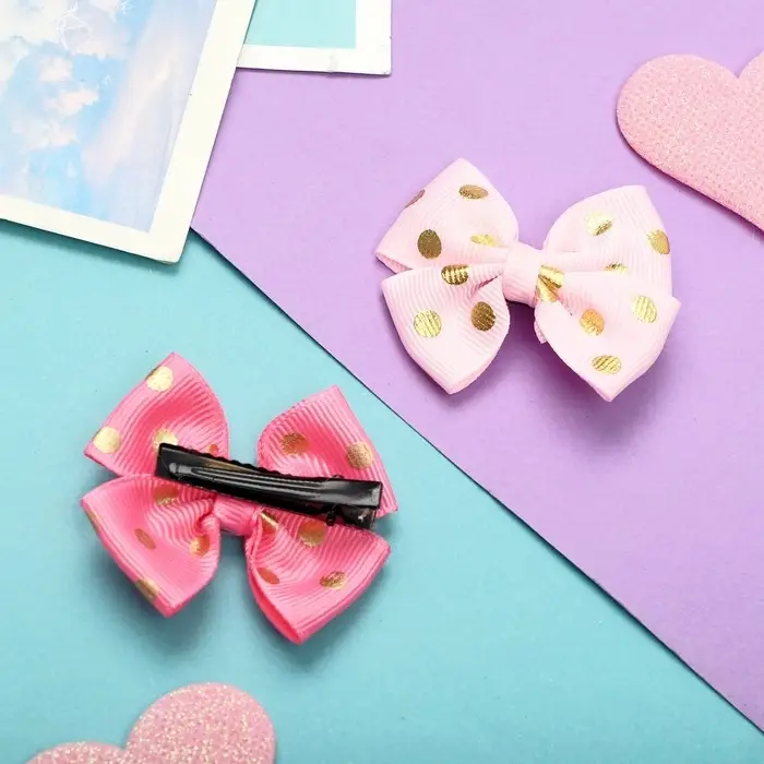 Зажим для волос "Бантик" горошек, 4 см