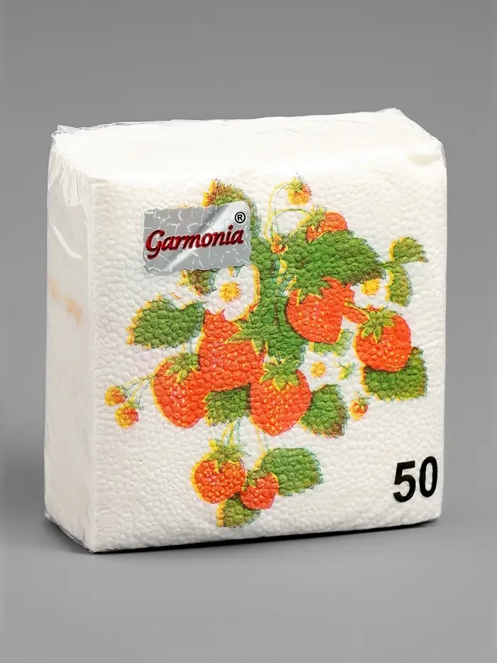 Салфетки бумажные Гармония цвета многоцветие "Земляника", 24*24 см 50 листов
