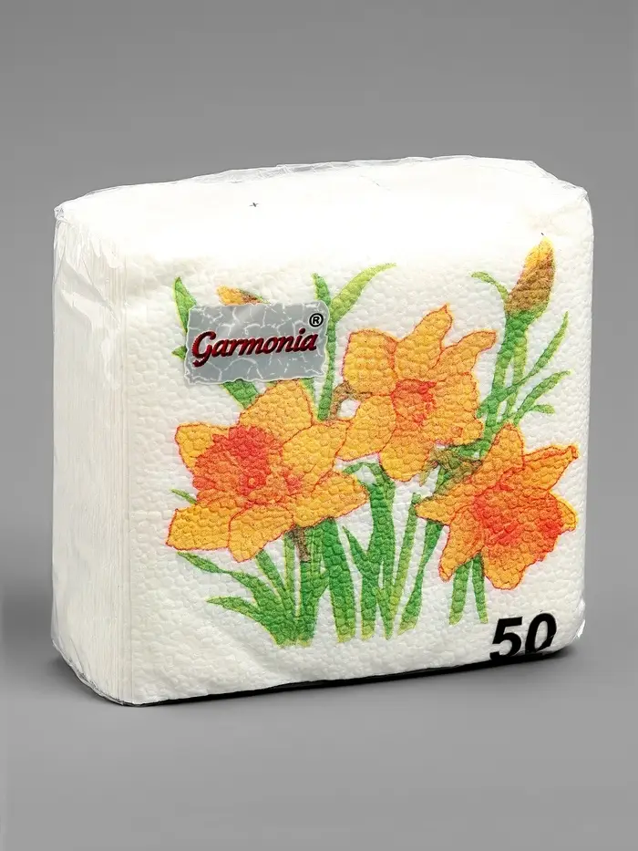 Салфетки бумажные Гармония цвета многоцветие "Нарциссы желтые", 24*24 см 50 листов