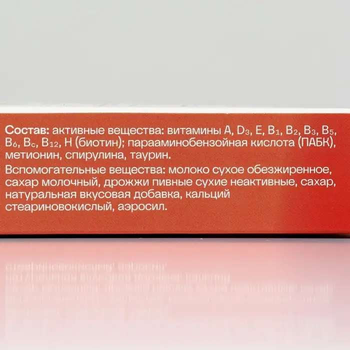 Вспомогательные вещества: молоко сухое обезжиренное, сахар молочный, сахар, кальций стеариновокислый, аэросил.