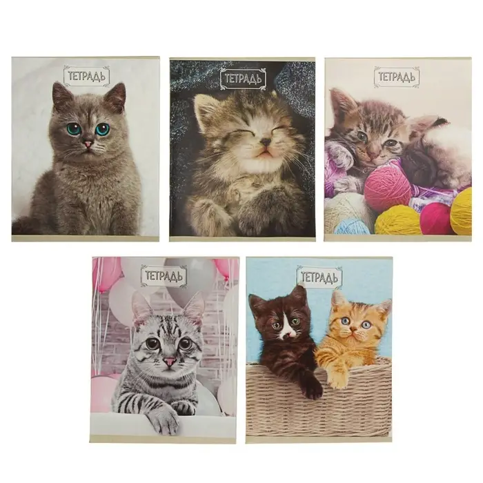 Комплект тетрадей из 5 штук, 48 листов в клетку Calligrata "Любимые питомцы", обложка мелованная бумага, блок №2, белизна 75% (серые листы)