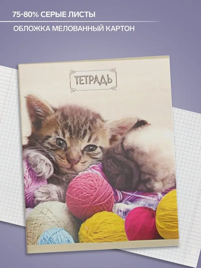 Тетрадь 48 листов в клетку Calligrata «Милые котята», обложка мелованный картон, блок №2, белизна 75% (серые листы), МИКС