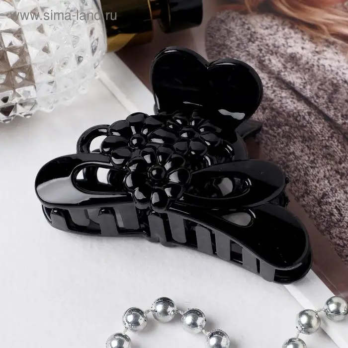 Краб для волос "Глянец" цветочки сердце, 8 см, чёрный