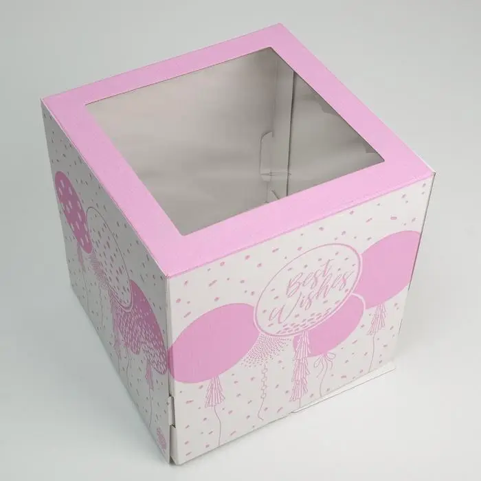 Коробка для торта с окном, кондитерская упаковка «Best wishes», 30 х 30 х 30 см
