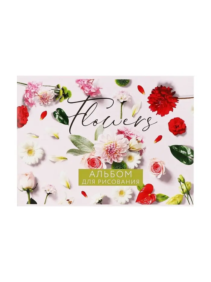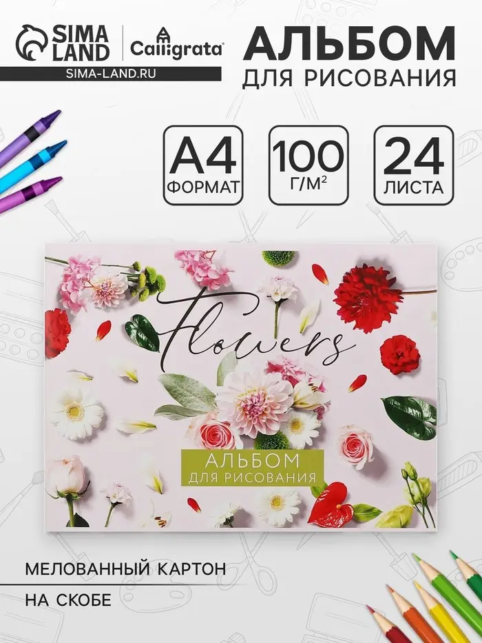 Альбом для рисования А4, 24 листа на скрепке «Цветы», обложка мелованный картон, блок 100 г/м²