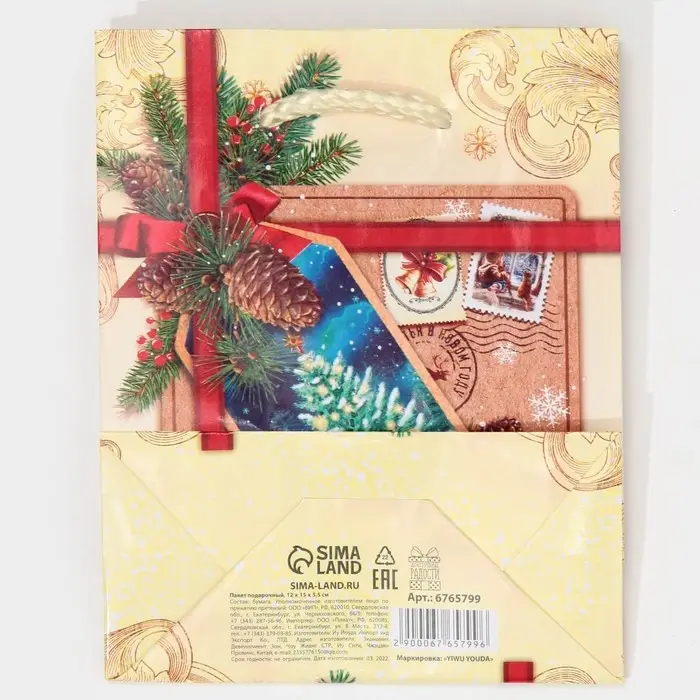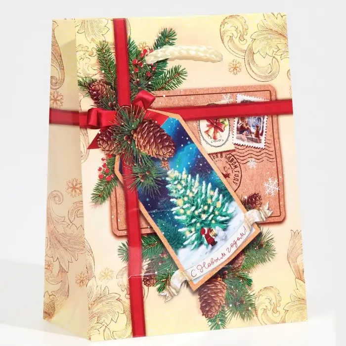 Пакет подарочный новогодний ламинированный «С Новым годом!», S 11.5 х 14.5 х 5.5 см