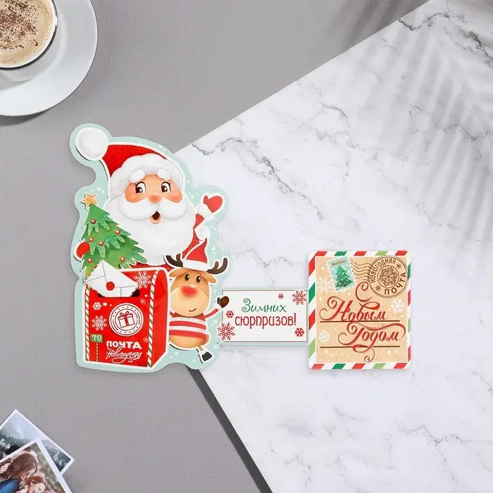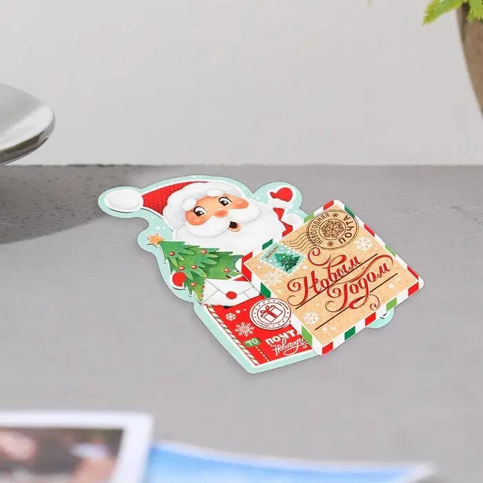 Мини-открытка "С Новым Годом!" глиттер, Дед Мороз, 19х13,5 см
