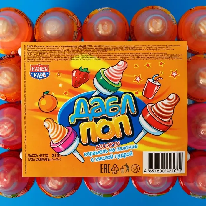 Карамель на палочке "Дабл поп" с кислой пудрой - это оригинальный сладкий подарок для мальчиков и девочек! Конфеты в индивидуальной упаковке с ярким дизайном, которую можно взять с собой на прогулку, в поездку, путешествие, в детский сад или школу. Такое угощение придется по вкусу любому сладкоежке! Прекрасный подарок детям на любой праздник.
