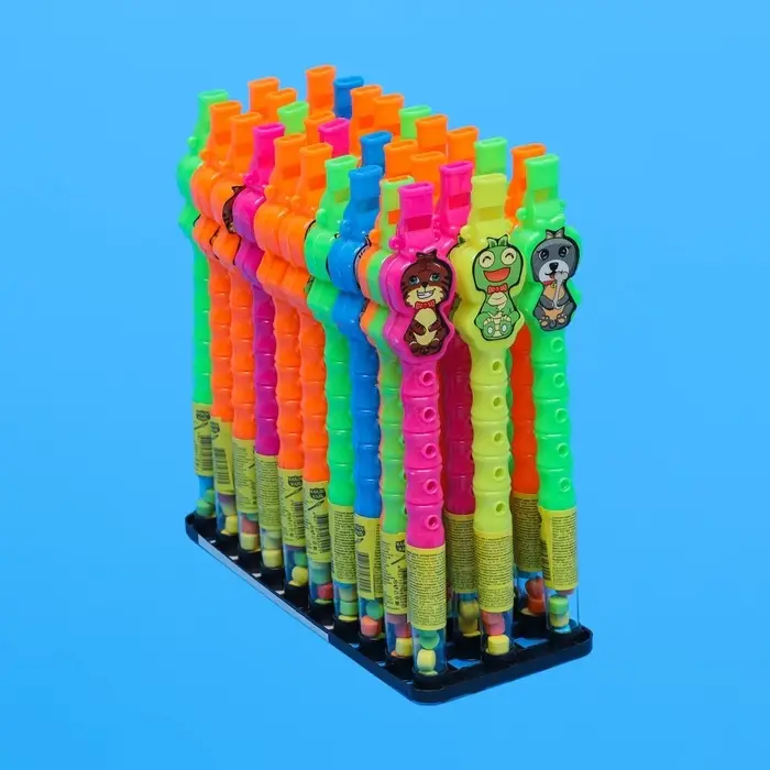 Сахарное драже "Дуделка" - это вкусные конфеты в необычной упаковке в виде игрушки-свистка. Драже имеет насыщенный сочный вкус и интересный дизайн, который никого не оставят равнодушным! Забавную упаковку можно использовать в качестве игрушки. Конфеты удобно взять с собой на прогулку, в гости, детский сад или школу. Такая сладость - прекрасный подарок на день рождение, Новый год, утренник в детском саду, подарок другу или подруге. Вашим детям понравится такой подарок!