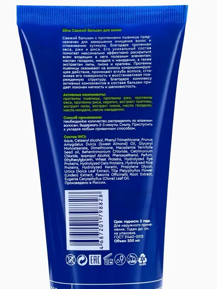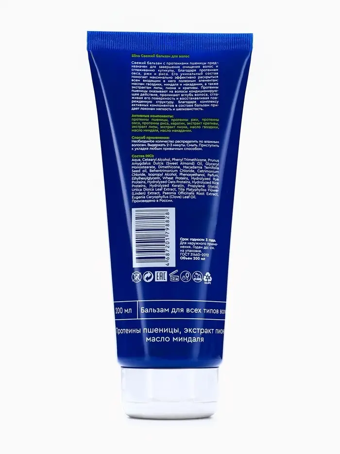 Бальзам для всех типов волос Silno Свежий, с экстрактом пиона и маслом гвоздики, 200 мл