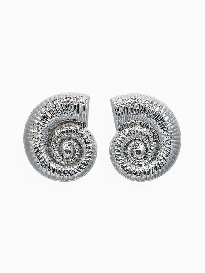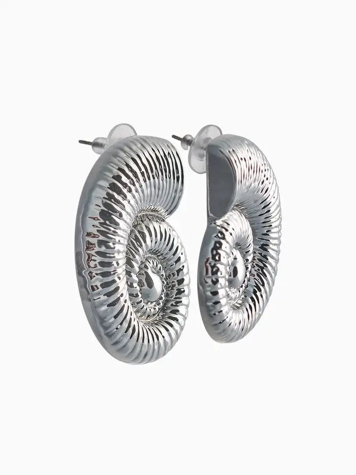 Серьги пластик «Ракушка» крупная, цвет серебро