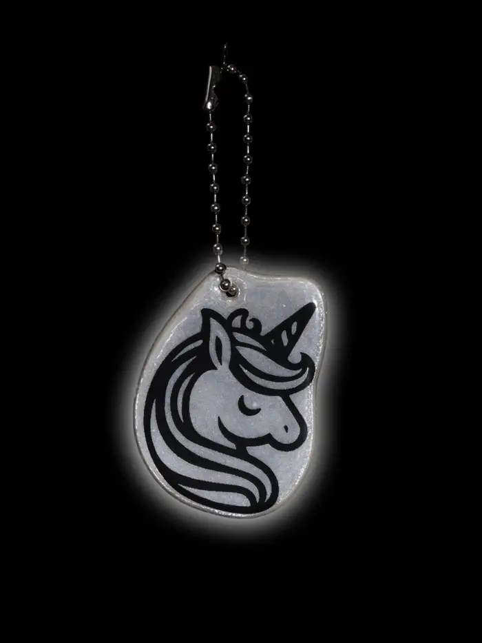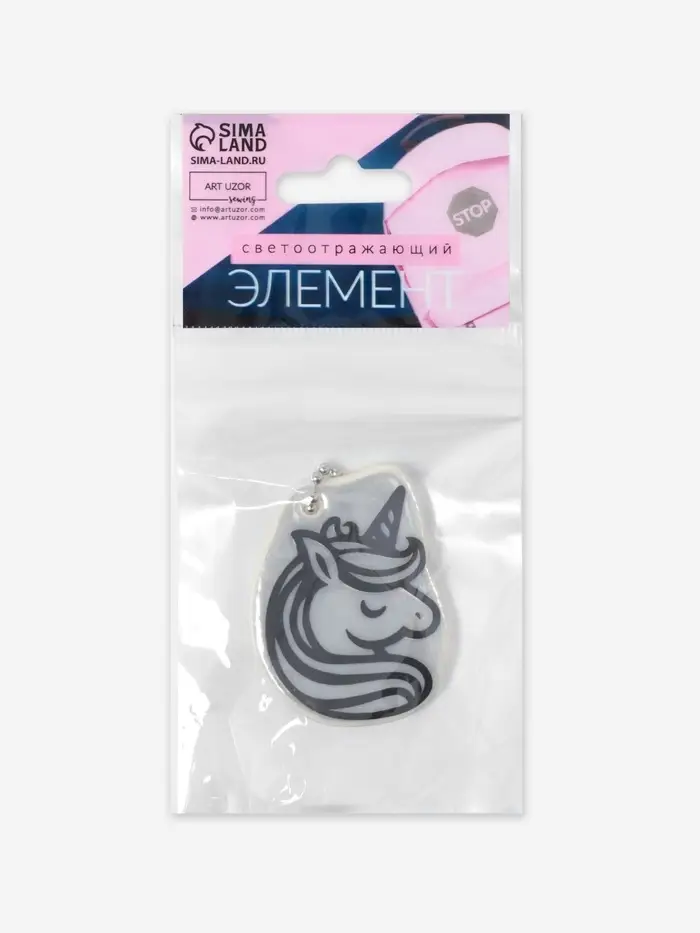 Светоотражающий элемент двусторон единорог 3,9*4,8см цепочка белый АУ