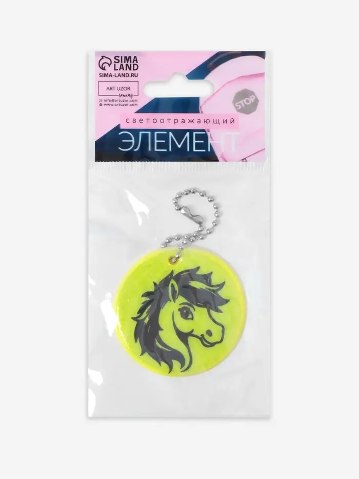 Светоотражающий элемент двусторон голова лошадки 4,7*4,7см цепочка салатовый АУ