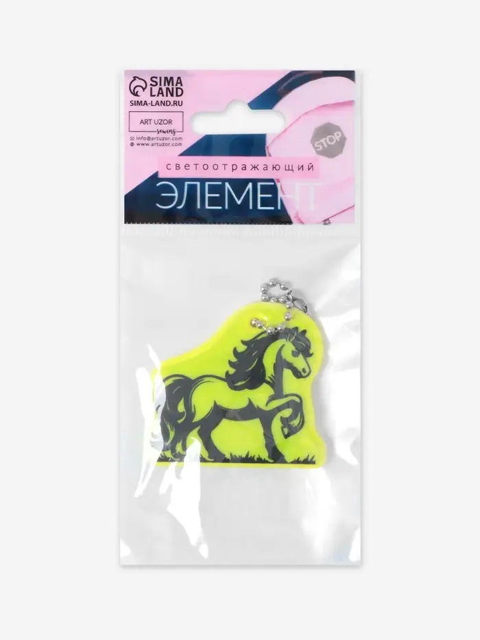 Светоотражающий элемент двусторон жеребец 4,8*4,4см цепочка салатовый АУ