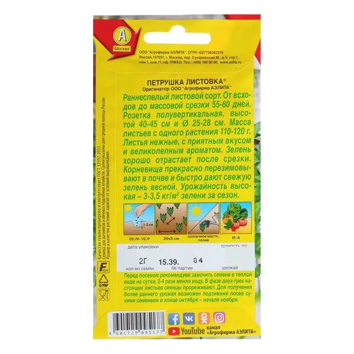 «Листовка» — раннеспелый листовой сорт петрушки. Растение формирует нежные листья с приятным вкусом и запахом. Срезанная зелень сохраняет свежий вид несколько дней.