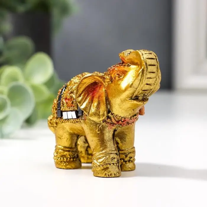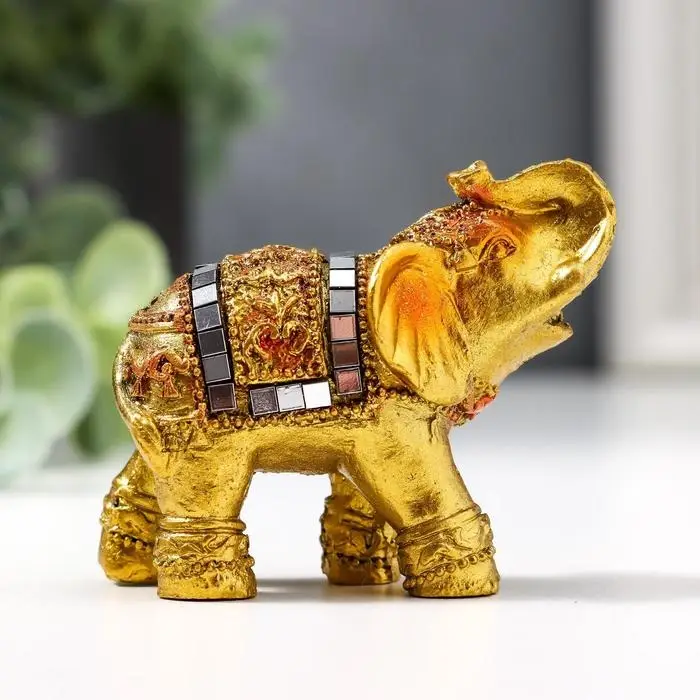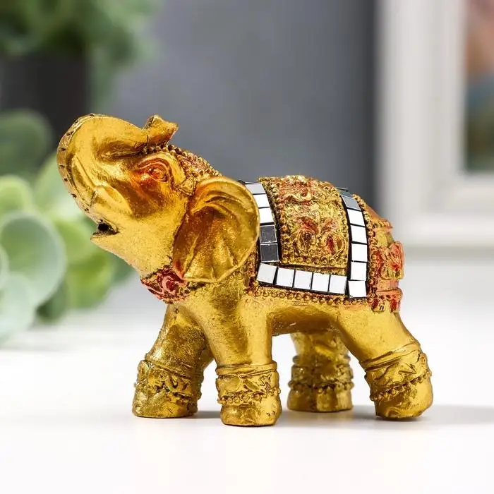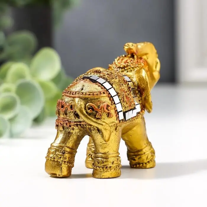 Фигурка полистоун «Золотой слоник с мозаикой из зеркал», 5.2×6×3 см