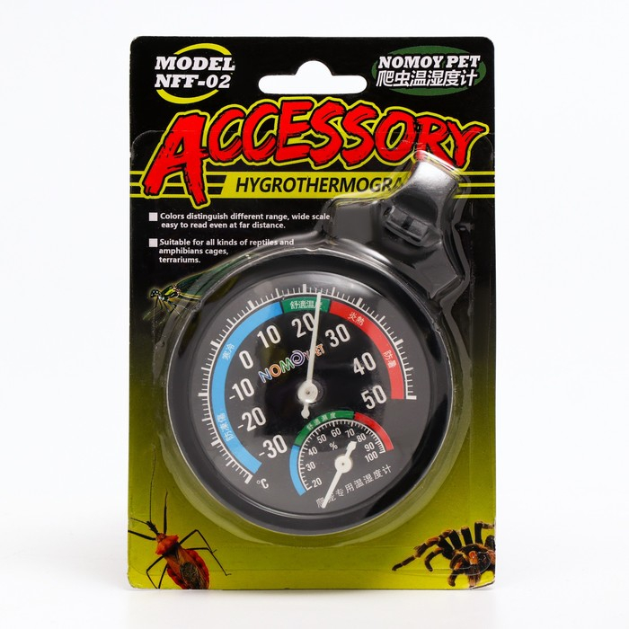 Аналоговый термометр + гидрометр NomoyPet - это незаменимый инструмент для тех, кто заботится о своих рептилиях и других животных, обитающих в террариуме. Этот прибор позволяет контролировать температуру и влажность внутри террариума, что является важным фактором для здоровья и комфорта животных.