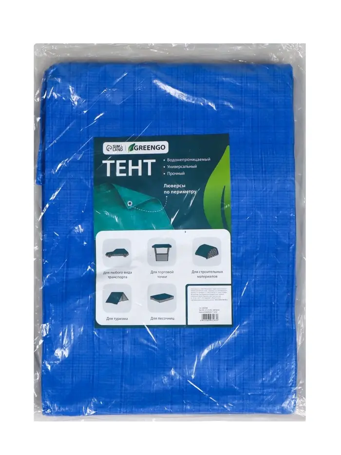 Тент защитный, 5 × 3 м, плотность 180 г/м², УФ, люверсы шаг 1 м, синий