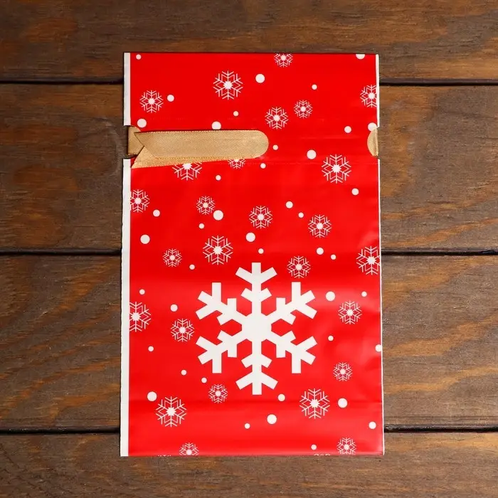 Пакет полиэтиленовый подарочный, с завязками "Снежинки", 15*23см.