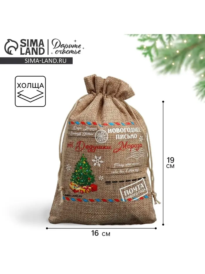 Мешочек подарочный с термонаклейкой «Новогоднее письмо», 16 х 24 см +/- 1.5 см